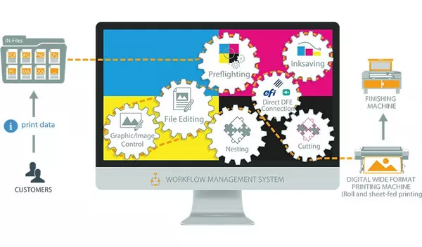 Ideal für eine breite Palette von Anwendungen, von Bannern bis zu Buchumschlägen, dank der flexiblen Zuführung aus verschiedenen Medienquellen, die ohne mechanische Anpassungen auskommt.